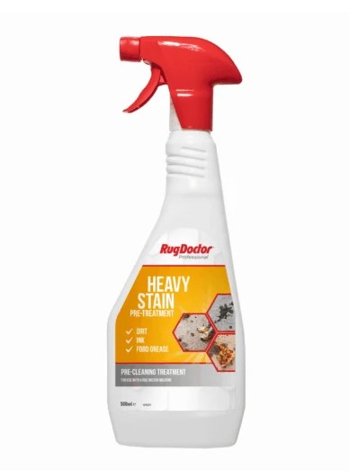 RugDoctor Heavy Stain Pre-Treatment Spray is a powerful, ready-to-use spray formulated to tackle tough, set-in stains on carpets and upholstery before deep cleaning. Designed to break down greasy spots, food marks, pet stains and other stubborn blemishes, this pre-treatment helps improve overall cleaning performance when used prior to shampooing or machine cleaning.