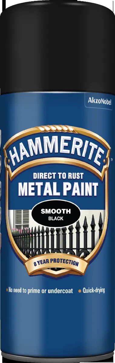 Ideal for metal gates, railings, garden furniture, sheds and other exterior or interior metal surfaces, this aerosol is quick-drying, easy to use and offers reliable protection against rust and weathering – while giving a smooth, even black coating.
